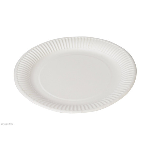 Тарелка бумажная 180 мм, белая, 100 шт/уп
